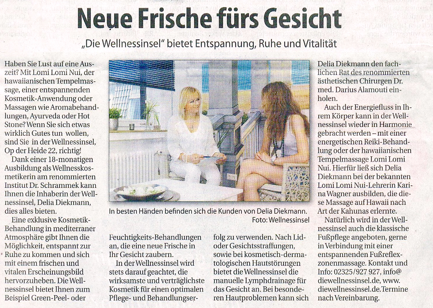 Ein schöner Artikel über die Wellnessinsel im vierteljährlich erscheinendem Magazin "natürlich HERNE". Das kostenlose Heft mit einer Auflage von 10.000 Exemplaren ist an rund 150 Auslagestellen im Herner Stadtgebiet (Arztpraxen, Reformhäuser, Apotheken und natürlich auch in der Wellnessinsel!) erhältlich und bietet viele interessante Berichte und lokale Tipps rund um eine natürliche Lebensweise, Gesundheit und Beauty. Weitere Informationen und die jeweils aktuelle Ausgabe zum Online-Durchblättern finden Sie unter www.natuerlich-herne.de! Den Artikel über die Wellnessinsel können Sie noch bis zum Erscheinen der nächsten Ausgabe ebenfalls im Online-Exemplar nachlesen oder auf das unten stehende Bild klicken, um es zu vergrößern. - Natürlich können Sie sich Ihr persönliches kostenloses Exemplar auch bei Ihrem nächsten Besuch in der Wellnessinsel sichern!